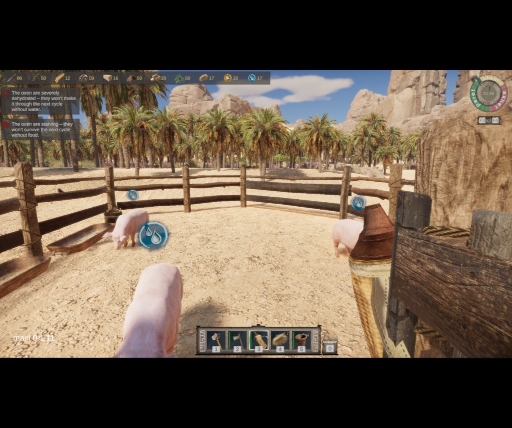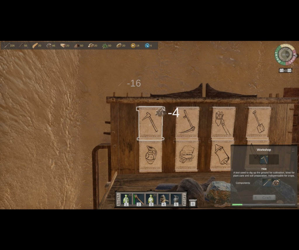 Seeing as Ancient Farm wasn't quite what I expected, I was still determined to give the title a thorough work out nonetheless, mainly because I have enjoyed crafting games in the past. I began with the tutorial - which works very well indeed - and set out to gather up some sticks and stones to start building the tools necessary to be a farmer in ancient Egypt! First I needed to craft a hoe to till the soil, then a bucket to be able to water the planted seeds, a sickle to harvest grass, - you get the idea - in order to get my crop to market and make some money. I eventually crafted an axe to cut trees down, a pickaxe to smash rocks which provided more resources and built a bunch of buildings in order to be able to craft advanced implements and resources. The game overall is an enjoyable experience because the tutorial spelled out every single step needed in order to be able to meet the travelling merchant that arrives at the end of every growing season.
