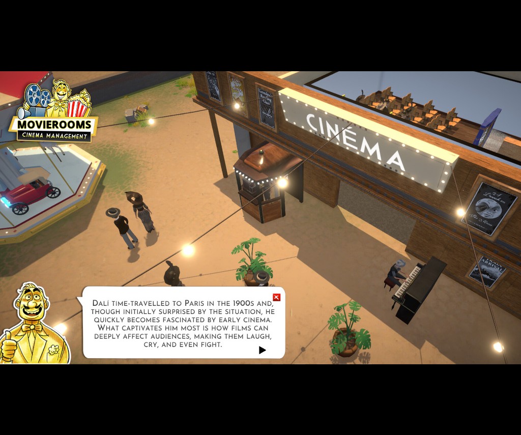 In Historical game mode, the history of movies is the main focus. This means the business of movie showing in the early days is in effect and it is true to life and realistic according to the date. One historical aspect of movie showing history, which is interesting and something I didn't know about, was the presence of piano players in order to keep customers in movie theaters entertained. This was common practice back in the day and it is a rather charming practice from days gone by. Realistic era equipment such as the old method of presenting silent moving pictures by manually flipping cards while projecting the effect on a screen is there and this makes the game be educational as well as fun. With all of that being said, historical reality is the name of the game when Historical Mode is fully functional.