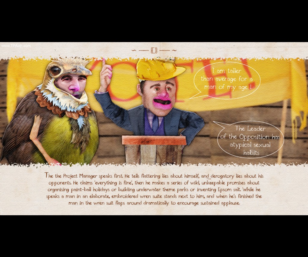 In practice, the game uses the point-and-click adventure game genre to make a bunch of jokes that eventually form into a surface level satirical critique of modern society. Take a point mid-way through Preposterous, where your character must win an election by making more outrageous lies than the opposing candidates while attaching yourself to a local celebrity. It’s