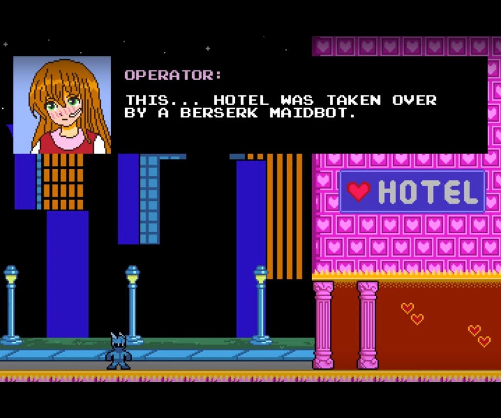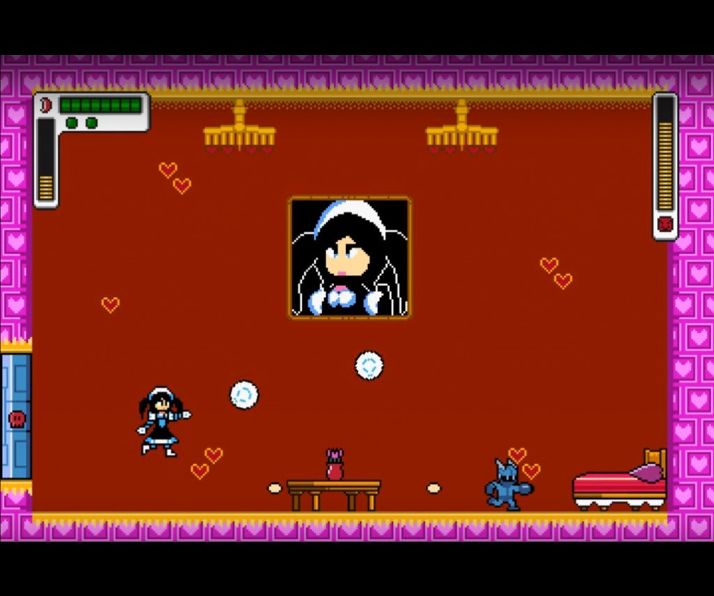 The review copy of the game contained four levels with enemy android bosses named Maid Bot, Fire Bot, Usher Bot and Chef Bot. I understand that Heartfelt Games has plans to add levels with new bosses in the future. I found that Maid Bot seemed to be the easiest of the four so I concentrated on that level first. I next tried the Fire Bot level and he was definitely more difficult and it took me quite a while to figure the level out. This is not an easy game to master and you will find yourself restarting some sections many times until you can figure out how to get past each area.