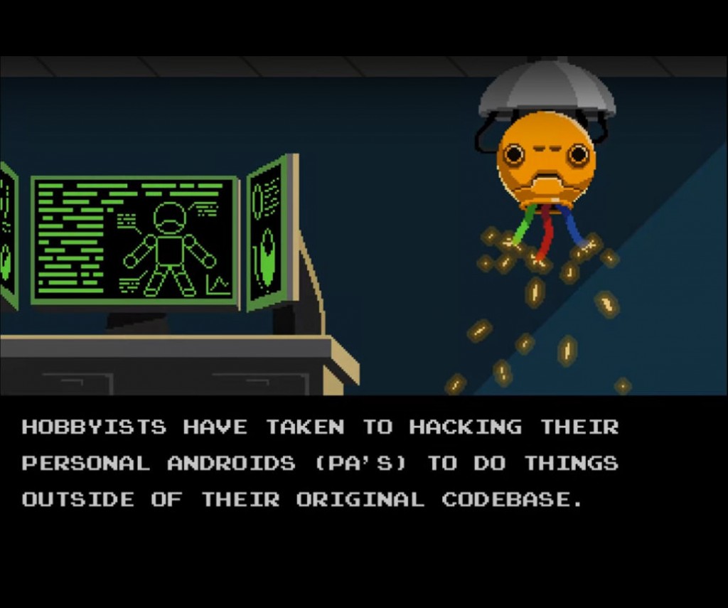 Alphaman is a side scrolling fare that looks, sounds and plays like one of probably a thousand arcade, DOS and console games from yonder year. There's really no storyline other than that a group of hackers have taken over some androids which they plan to use to dominate the world. As the hero, it's the players responsibility to stop them by using an android named Alpha.