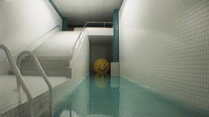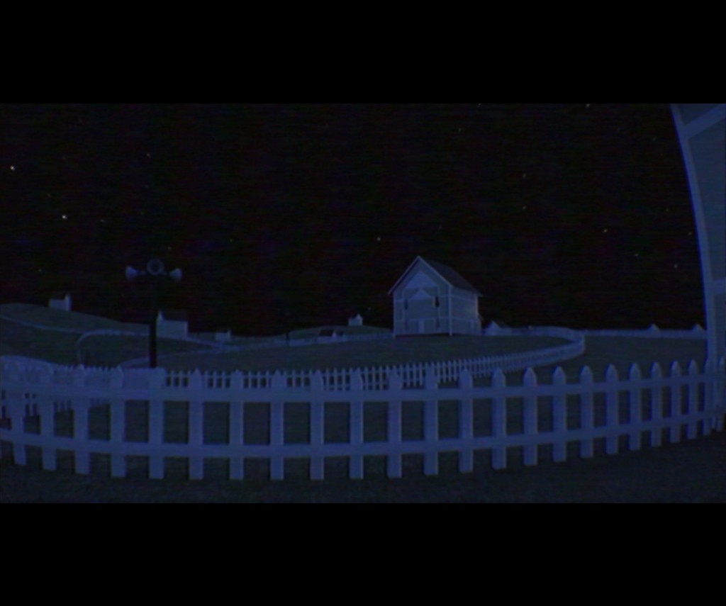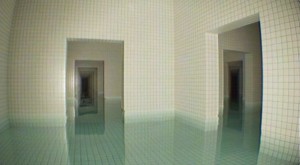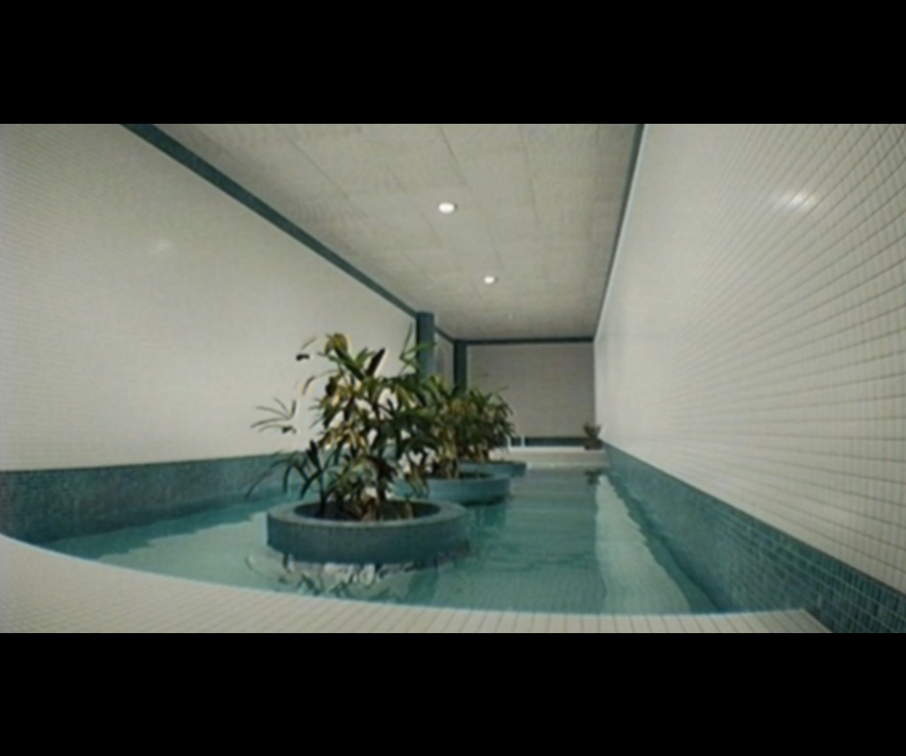 The first environment is a massive labyrinth of rooms and hallways inspired by old hotel pools. Areas are covered from floor to ceiling in off-white tiles, and each room is ornamented with trappings of water or vague coherent bits of slightly dilapidated lobbies and guest hallways. The second opens things up to a seemingly endless suburban landscape filled with same-looking houses and hills devoid of any actual life. Moreover, the entire game has a retro filter over the visuals that gives the appearance of a 1980's-era found footage film. It's very effective, and some of the rooms and spaces look quite real with the distortion.