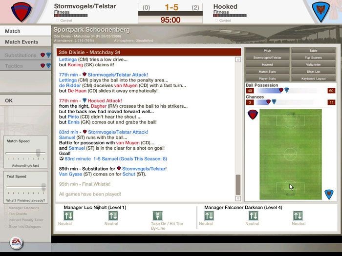For starters, the game's interface has received a major overhaul. It's not my cup of tea as it looks more like a website than a computer game, but that's perhaps a question of taste. Everything can be found fairly easily and were it not for a couple of glitches; it would have been a big improvement on its predecessors. What glitches? Well, the most annoying one involves your news reader. It continuously sends you updates and in it, often mentions players. Now, a simple right click on the name of the player shows you their details. At the bottom of the page it shows a row of buttons that 'should' let you have a chat with them, engage in contract talks etc. These buttons don't work. Seriously, they don't. They do work when you go to your team overview page and right click there. Yes, this is after installing the (likely to remain only) patch. There are a number of other problems in there but I think you've read enough of the game's less stellar points by now. Lets us have a look at its good qualities.