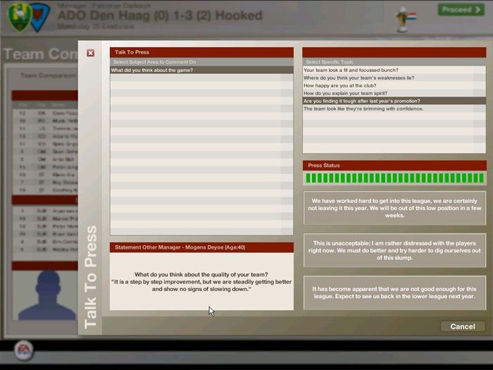 It's not the main reason why I chose to put my cash towards Electronic Arts for the second year in a row though. All things considered, Football Manager is a superior game but it still doesn't allow me to start my own club and fully manage it. These two features could be found in TCM and have returned in full with FIFA Manager. Running an existing club is only so much fun but nothing beats the feeling of the former amateur Hooked team kicking the pants out of Ajax, Arsenal or Real Madrid. Of course I haven't managed to do that yet, but I'm getting there in my current game. The fact that my board was not complaining that I was overspending on players proved instrumental to my success. The player determines how money should be spent, as long as there is cash in the account.