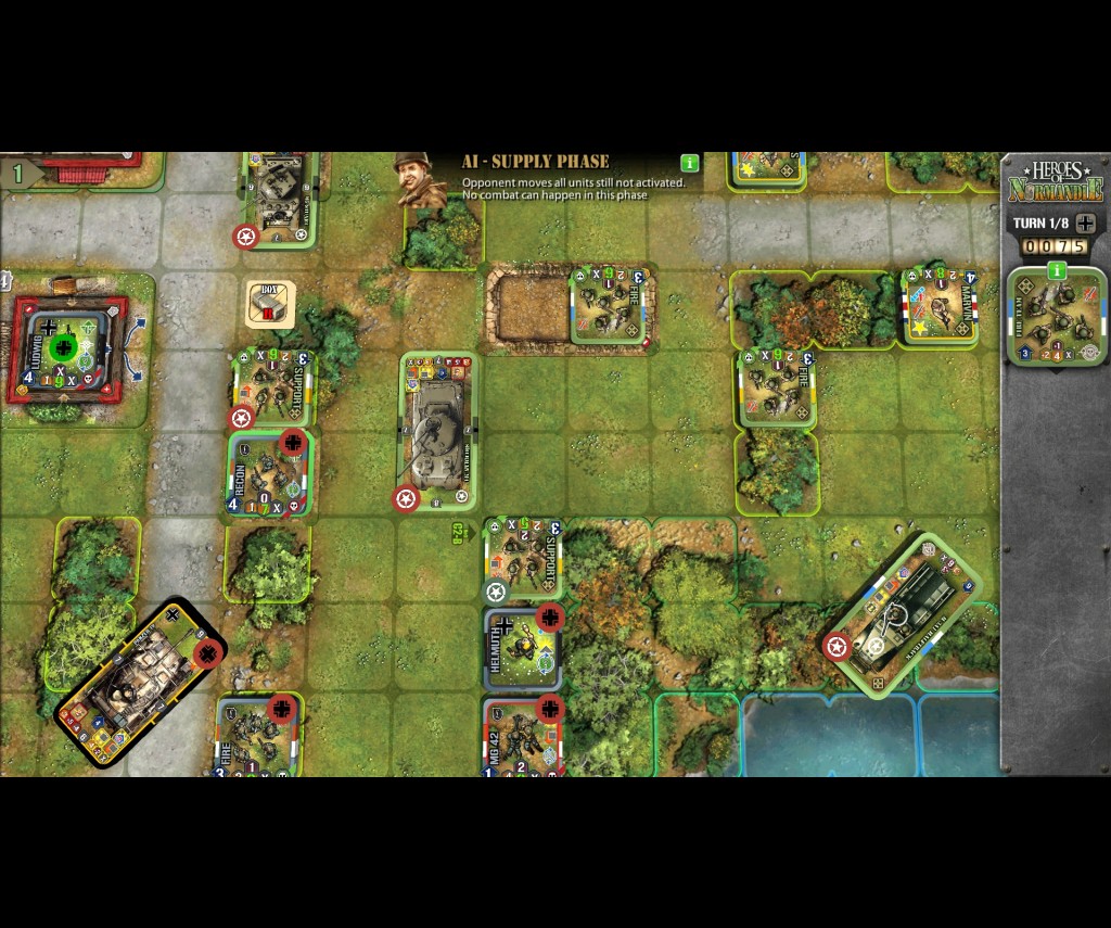 Each turn takes three different phases: an order phase, an activation phase and a supply phase. The order phase has you pick the units that will attack and prepare them to fire on enemy soldiers. Units will make the actual attack in the activation phase. The explosions and gunshots during this phase are incredibly satisfying, especially when an opponent's tank has been destroying your units throughout the game. Lastly, the supply phase is where you can move all of the units that didn't attack. Despite these phases, the turns themselves move along very quickly.
