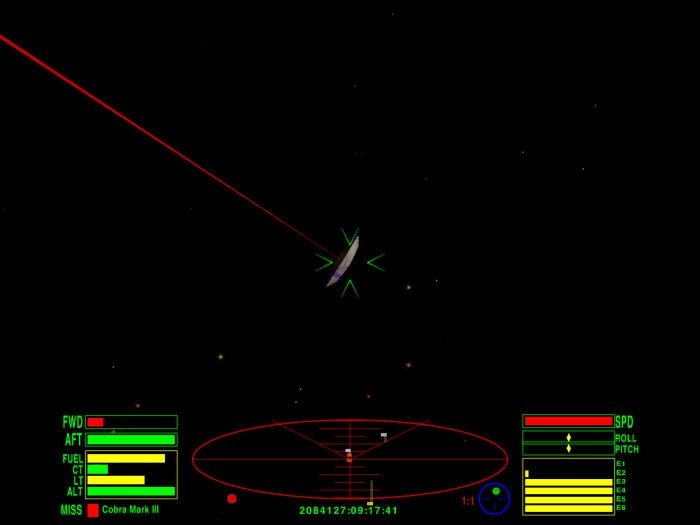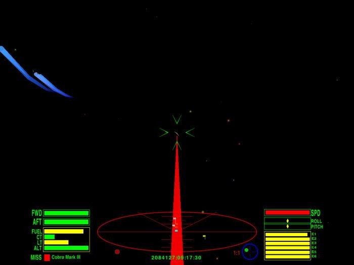 The pirate Kraits fired first, impatiently, and as the beam lasers shot past Commander Marcan Wolfwood's Cobra Mk III, he smiled to himself ruefully. He knew that by the time the enemy was close enough to actually hit him, their weapons would already be too hot to continue firing. Marcan waited for a few more seconds before squeezing the trigger of his own weapons. The laser beam sheared the space around the first pirate Krait until at last it found its mark and the small ship exploded in a brilliant flash. Marcan did not waste time but turned his ship quickly towards the next enemy...